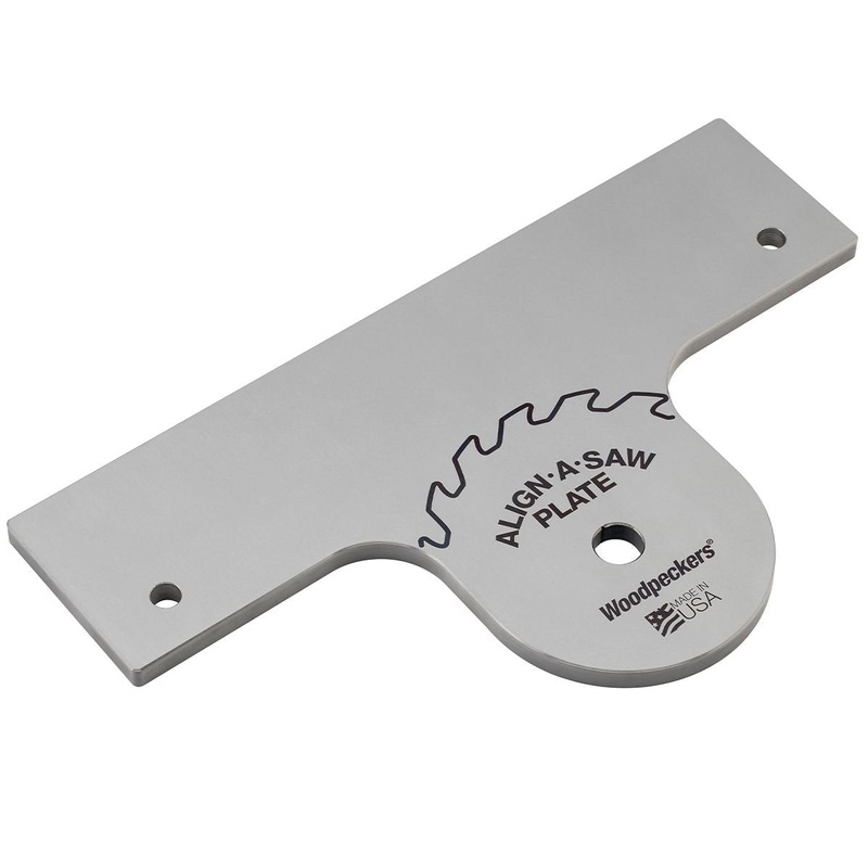 The Woodpeckers Align-A-Saw Plate is a precision-ground tool designed to simplify and perfect table saw alignment. Made from solid 3/8" thick steel, this plate replaces your saw blade during setup, providing a flat, tooth-free surface for highly accurate a