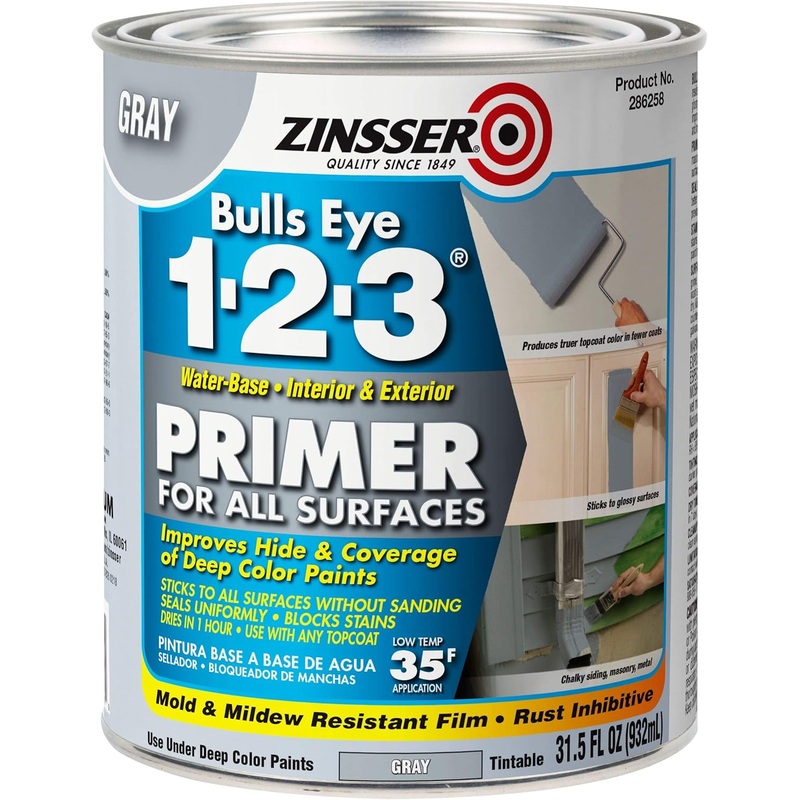DLR44029606Zinsser 286258 Bulls Eye 1-2-3 All Surface Primer, Quart, Gray